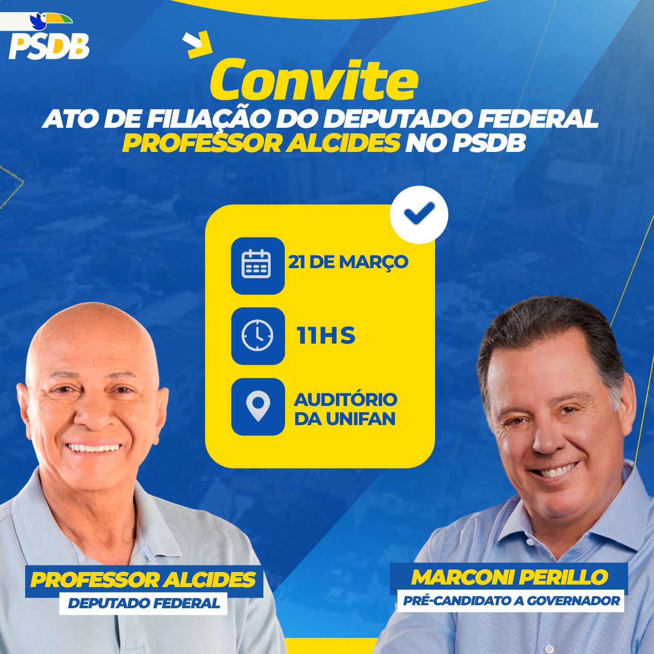 Filiação do deputado federal Professor Alcides ao PSDB é confirmada para 21 de março